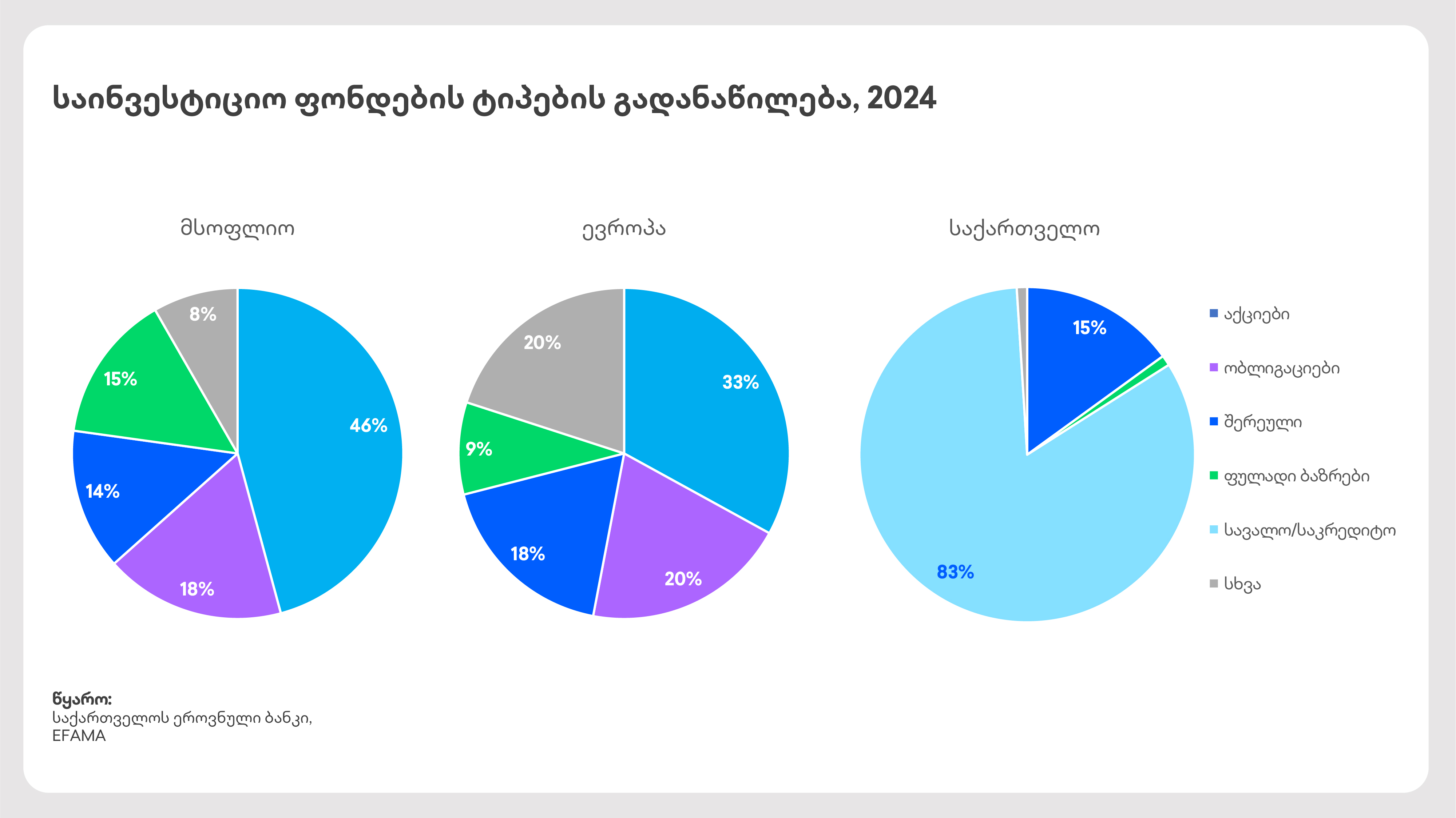 საინტერესოა, რომ ქვეყნების მიხედვით ფონდების ტიპებიც განსხვავდება და ეს მათი კაპიტალის ბაზრების განვითარებას ასახავს. საქართველოშიც მსგავსი სურათია — ფონდებს შორის მთავარი ადგილი საკრედიტო ფონდებს უჭირავს, რის შემდეგაც ფიქსირებული შემოსავლიანობისა და სხვა ტიპის ფონდები მოდის ბაზრის განვითარებასთან ერთად, მოსალოდნელია ქართულ ბაზარზე გამოჩნდეს ახალი, სხვა ტიპის ფონდები, რაც ინვესტორებისთვის ახალ შესაძლებლობებს შექმნის.